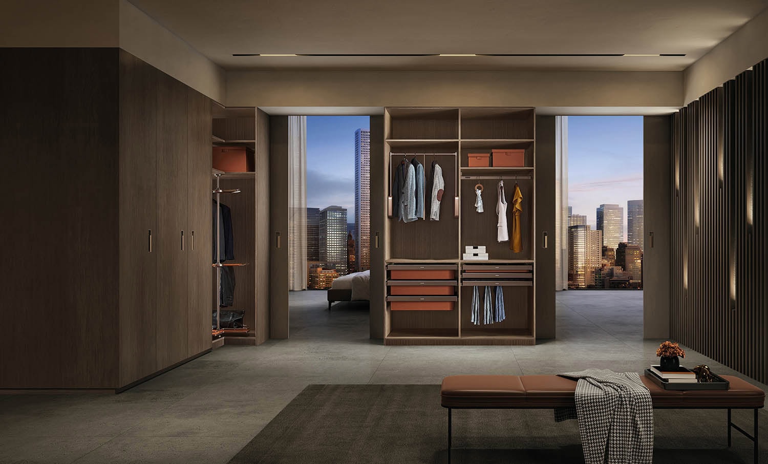 Hidden in the inside of the cabinet, can be rotated 90 degrees for usage, saving closet space.