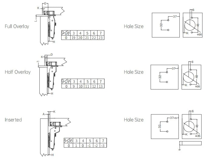 | 8202012 | 8202022 | 8202032 | Half Overlay | H=0, 4 Holes | ฯ35×12.5mm | 105ยฐ | |